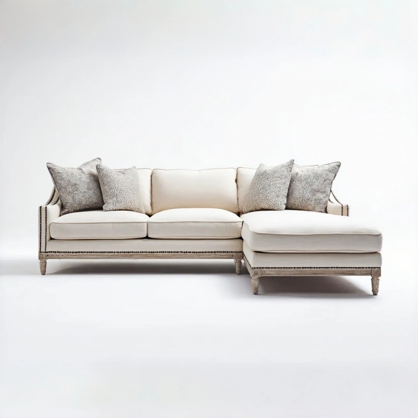 The headboard is upholstered in fabric in a light grey colour, offering a soft and supportive surface. The structure is designed for stability and long-term daily use.