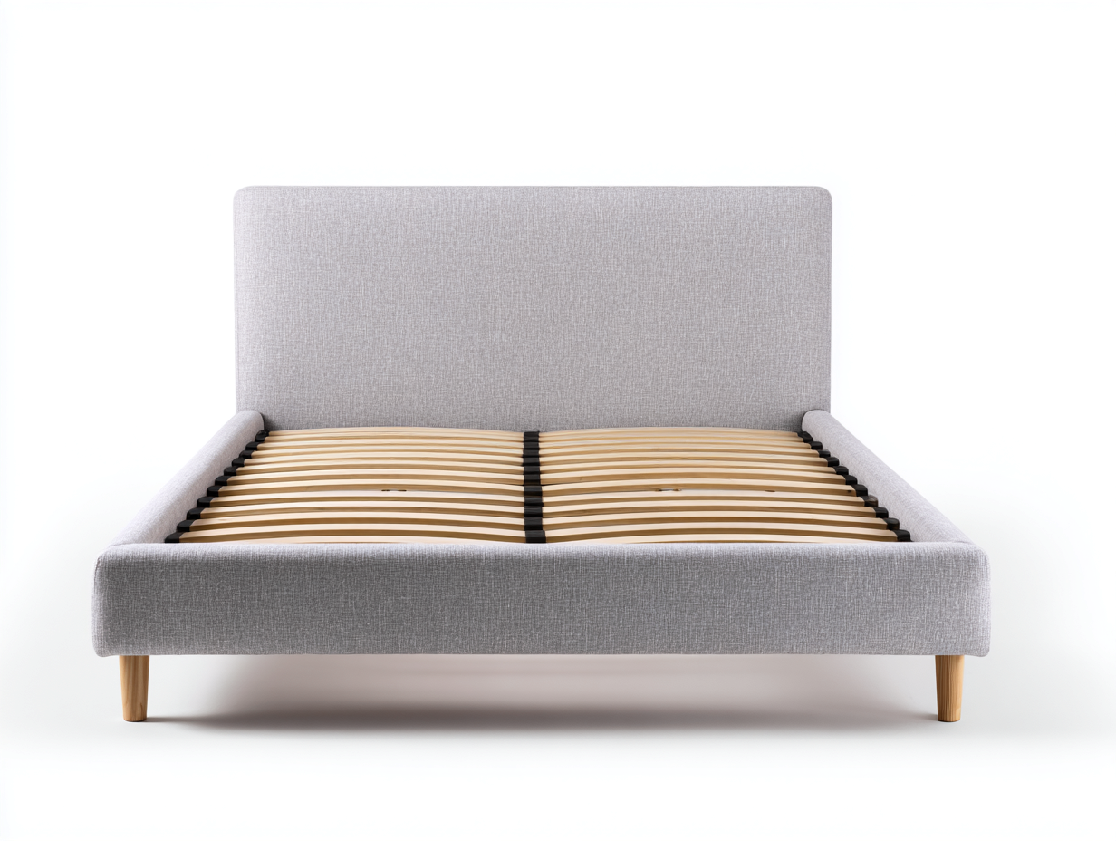 Double Beds Upholstered Fabric Bed Frame 200x150x110 cm - Light Grey-Natural Wood - Modern Design